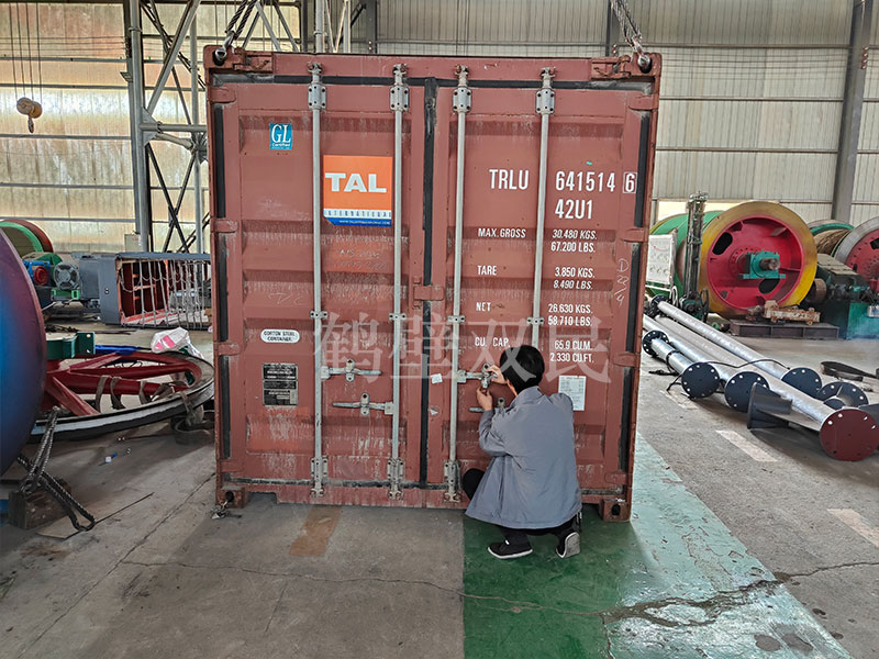 發(fā)往歐洲的礦井提升機(jī),裝箱工作共用時(shí)一天的時(shí)間,分三個(gè)集裝箱,完成裝車。至此,發(fā)往歐洲的井架、鑿井絞車、礦井提升機(jī),全部順利發(fā)往歐洲土耳其。