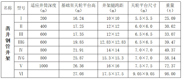 立井鑿井鋼井架系列主要采用鋼管、型鋼等焊接或螺栓連接而成,可滿足井井3.5-11m,井深200-1000m的立井井筒施工及其工藝要求,在滿足強度、剛度和穩(wěn)定性的同時,做到機構合理,加工制