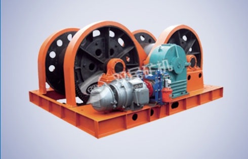 主要結構機械部分:主軸裝置、減速器、聯軸器、制動器、液壓站、深度指示器及其傳動裝置、測速發電機裝置、護板、護罩、護欄。輔助機械部分:司機椅子、導向輪和天輪、車槽裝置。電器部分:主電機及電氣拖動裝置、電器控制裝置、電器保護裝置。電動機通過減速器驅動卷揚筒旋轉,鋼絲繩一端固定在卷筒上,另一端經卷筒纏繞后,通過井架天輪懸掛提升容器。隨著卷筒的旋轉,實現容器的上升和下放。