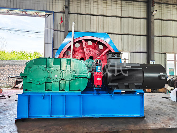 鑿井絞車工作原理:當啟動主電機時,由電動機轉子通過低速聯軸器將動力傳遞到減速器的高速軸上,經過兩級齒輪傳動減速后,再由減速器的被動軸通過聯軸器傳遞給主軸裝置。若不斷改變電動機的轉向,可使卷筒進行纏繞或放松鋼絲繩,同時提升容器在井筒作上下往返,周期性運動。