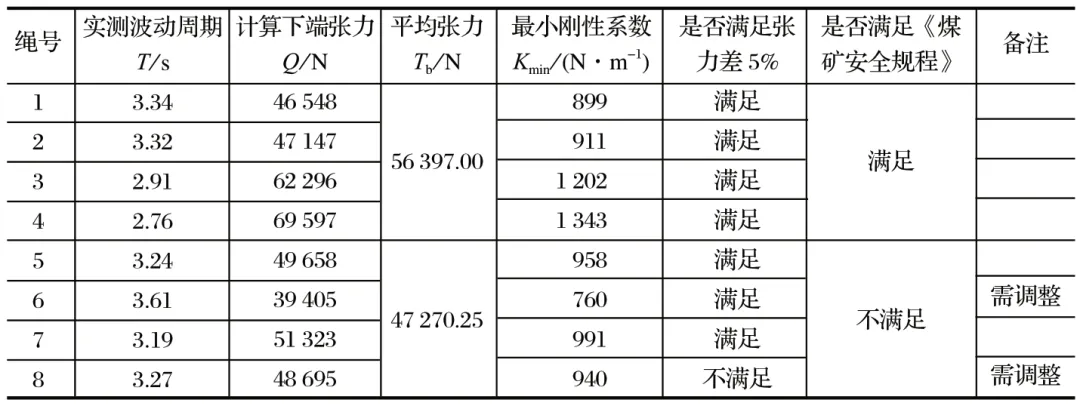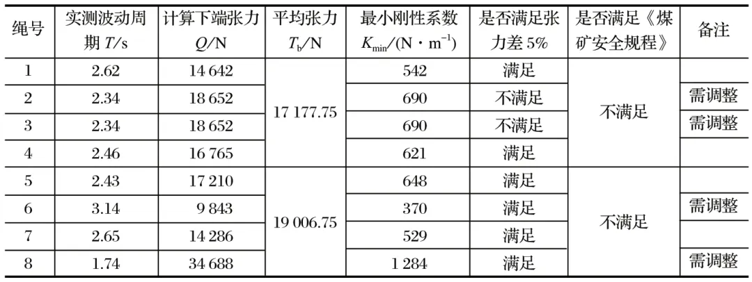 表2 鄭煤集團某礦副井罐道繩張力測試結(jié)果
