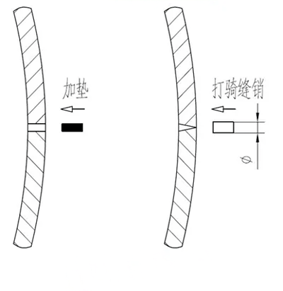 如果縫隙沿筒殼內外不均勻,一般是外側頂緊,造成貼緊的假象。可以從外側在接合縫部位打騎縫銷并可靠固定,將縫隙處撐緊。