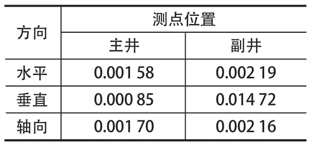 表2 頻率 600 Hz 時主井和副井主軸承座驅(qū)動端振動幅值比較