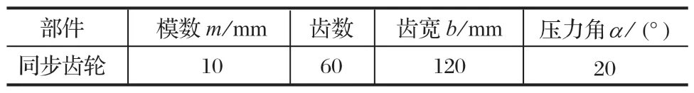 表1 同步齒輪結構參數
