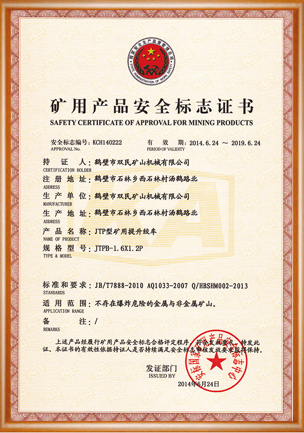 礦用產品安全標志證書